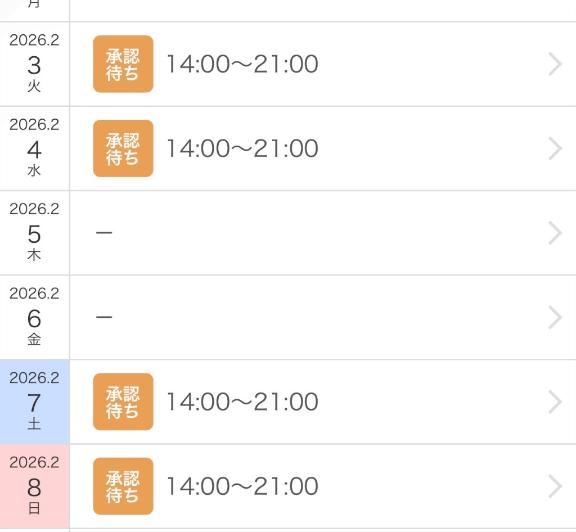 今週1週間の出勤予定です。 02/02(月) 11:00…